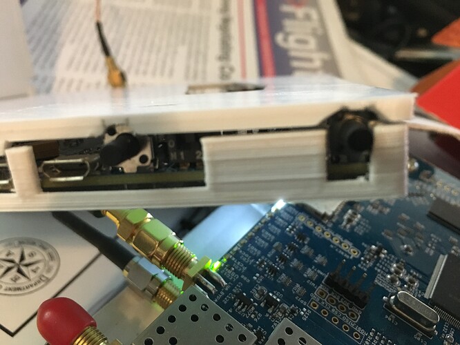 I just had this printed out, and the bottom of the main definitely still needs to be at least 2mm deeper due to the switch pins. Also the antenna lower case needs to be a couple of mm wider…I had to file a lot of material out of the grooves to get the antenna in. Actually, now that I think about it, the USB openings needed to be widened by about 2mm each side, The other side of the case fit perfectly, the top of the antenna could have been maybe a mm wider, but it fit.