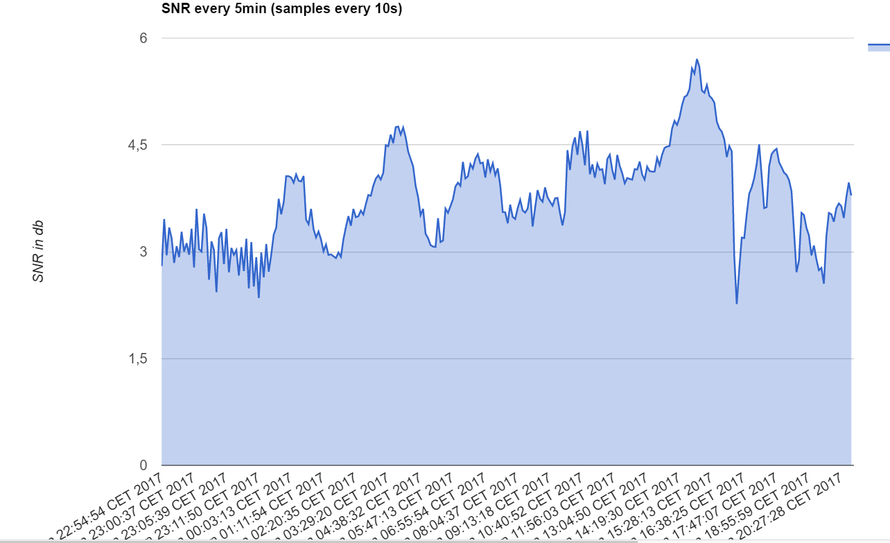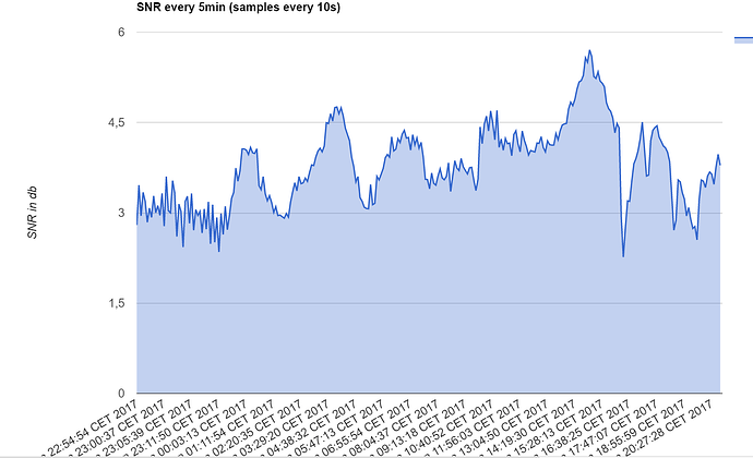 Whilst I don’t have logging running ( I have not had time whilst i am near the CHIP to fiddle) I can confirm that my SNR is up around 7 - 8 now (as opposed to 5-6) at 51Deg N , with nothing changed or touched at all .
