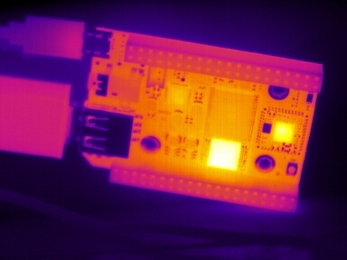 I’m having a good run so far it seems. An uptime of 18 hours, no hangs, or powerdowns. I took a few pictures with my thermal camera following @kenbarbi s idea that SDR may not be getting powered at times. The boards look normal, warm. If I encounter issues again I’ll take another set of pictures.