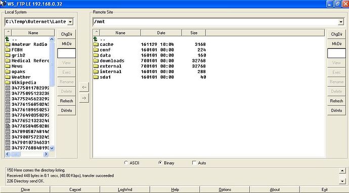 Using my FTP Program I donât see that directory or files at either the first, second or third level of CHIP file access, even when I burrow down thru each of the new directorys.