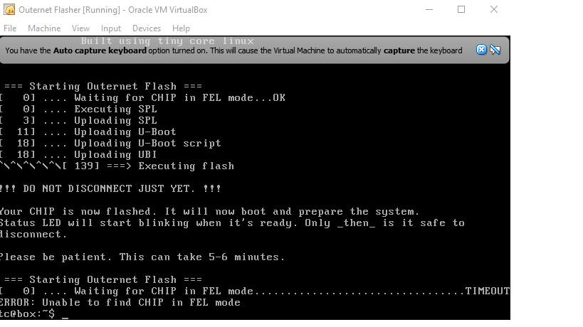 The great thing about being able to flash in âFEL modeâ (what VM flasher does) is that it is always possible to recover a CHIP that way. You would lose data, but the hardware cannot be bricked.