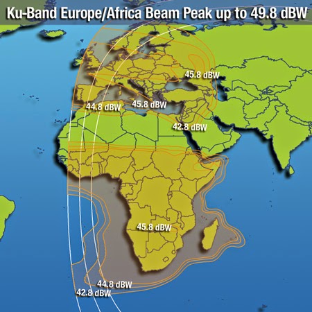 Data is being broadcast from Intelsat 20, so dishes should be pointed to the appropriate coordinates based on user location.